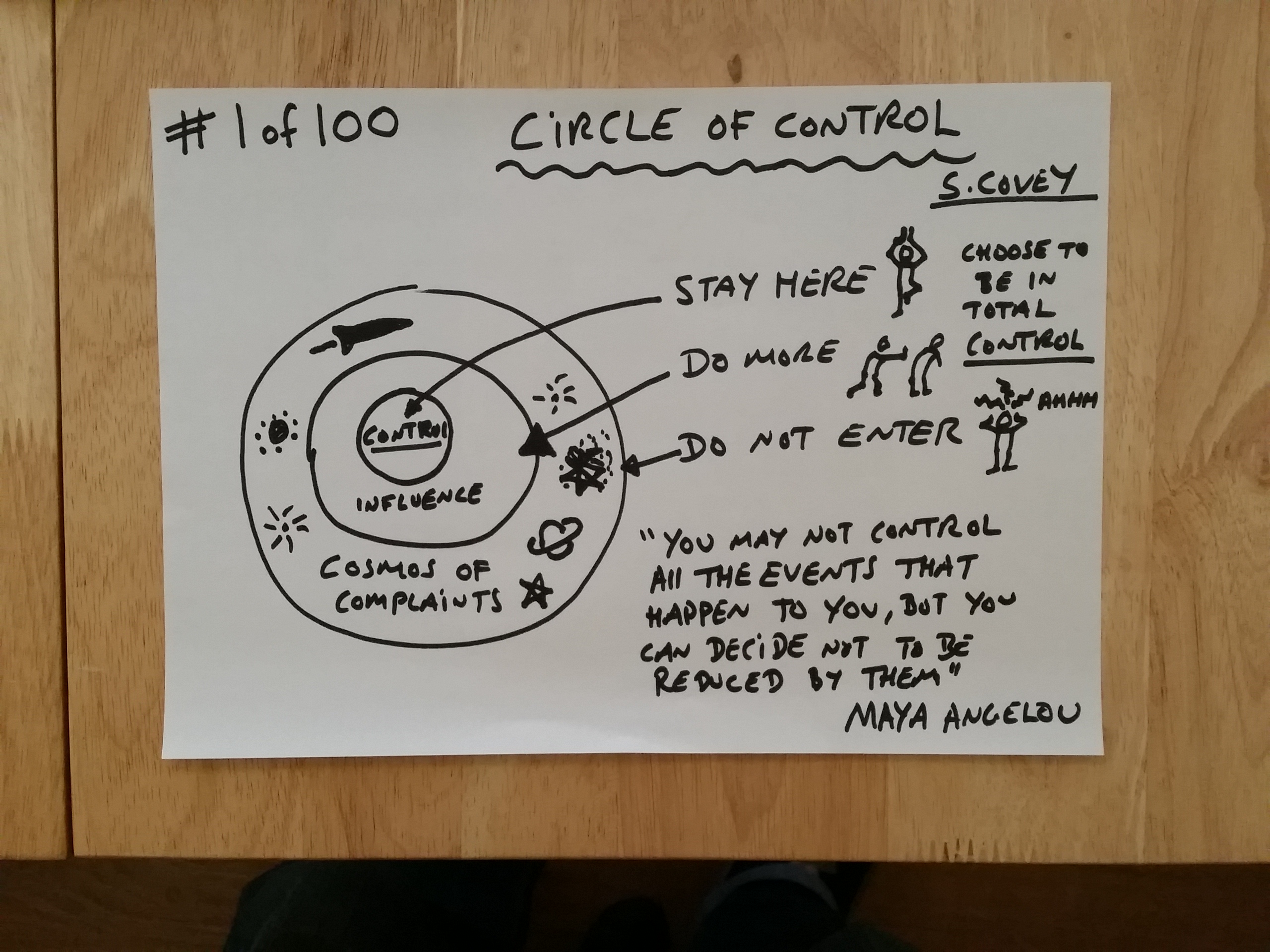 So #1 of #100daysofpersonalimprovement is the Circle of Control by Stephen Covey.