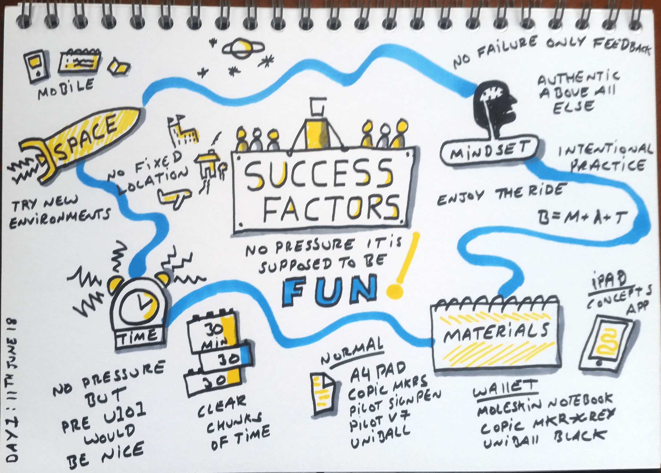 Predilection to clustering / buffering – In facilitation work, in terms of moving, post its or facilitation cards I do this VERy regularly, but not so much in live drawing / sketchnoting and this is where it really needs to improve.