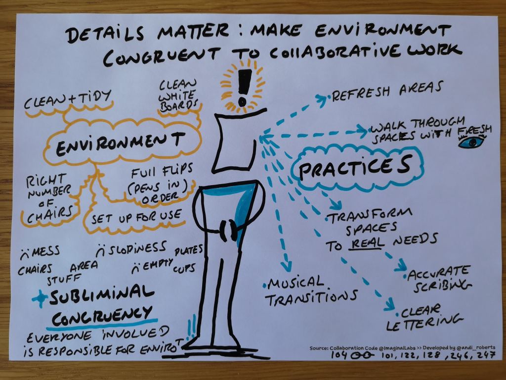 The following are my sketchnotes from the book by Rob Evans “The Collaboration Code” where he writes up on how to prepare and frame the space for working collaboratively. They were drawn pretty quickly for my own learning purposes, but I thought they would be useful to others: