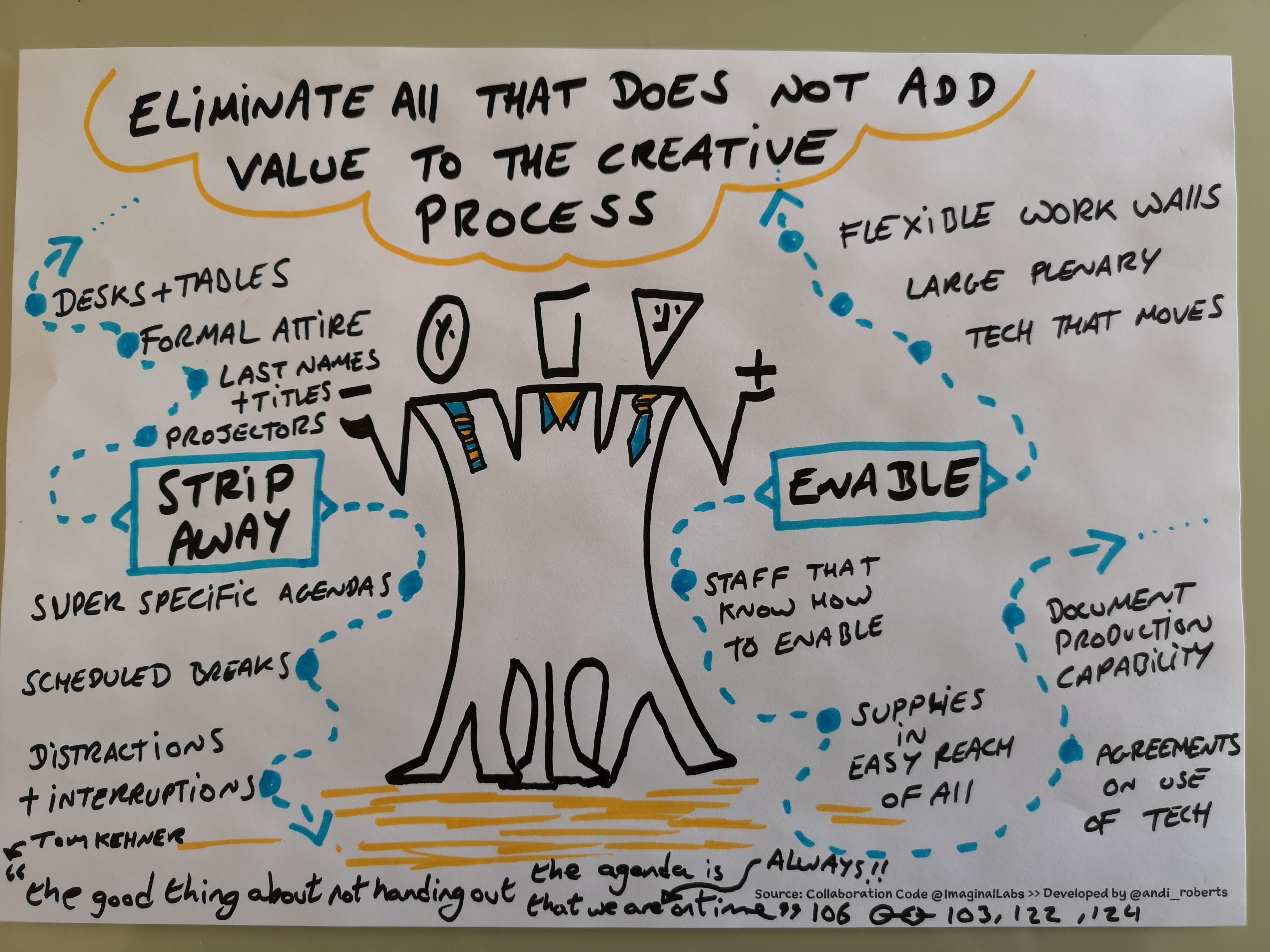 - Supported by appropriate resources: markers that work, whiteboards, flip charts, walls you can dry wipe on etc.