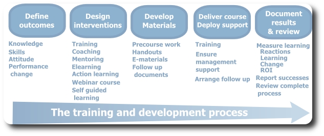 Once the needs have been developed an appropriate training course can be developed to cover these needs can be developed into a training programme that may consist of one or a series of development courses or perhaps be blended learning that mixes more traditional training methods with online learning.