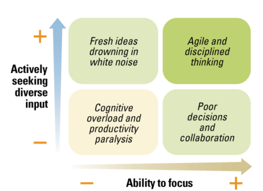 Developed by Carsten Pedersen this two by two looks at the balance between capacity to focus versus gaining input from multiple sources. The full article and original document can be found HERE.